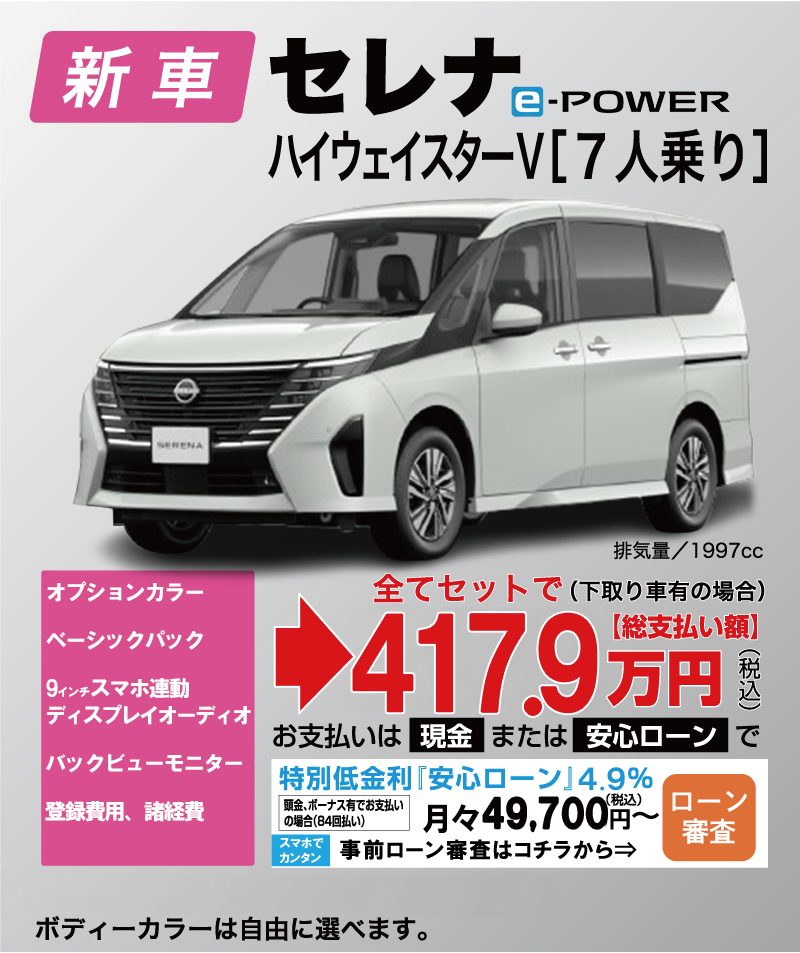 新車セットメニューのクルマの一例